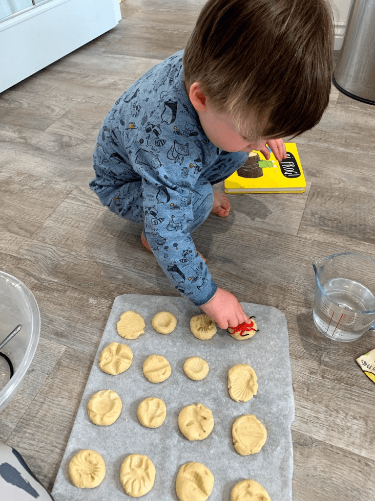 One time we used our under the sea animals to press the biscuits down instead of a fork which didn’t turn out as impressively as I’d hoped, but Robbie had great fun making them.