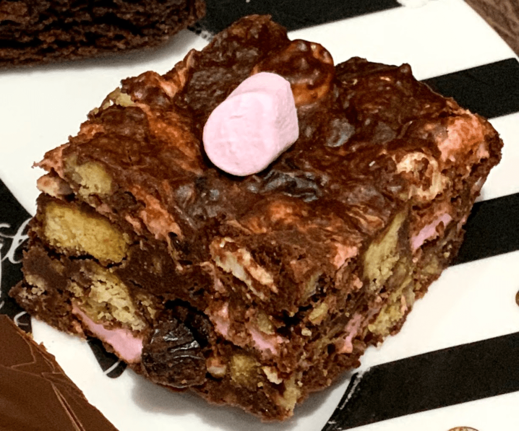 This was a great, simple recipe. I decided to keep it simple and only add raisins and marshmallows to my rocky road, mostly because that was all we had in the house and I couldn’t go to the shops due to shielding (2020), but sometimes simpler is better. I didn’t dust the slices with icing sugar as suggested either as I thought this would be messy with a 2-year-old helping! This did however make the Rocky Road taste more tart due to the dark chocolate. The second time I used slightly less dark chocolate and slightly more milk chocolate which made up for missing the sweetness of the icing sugar.