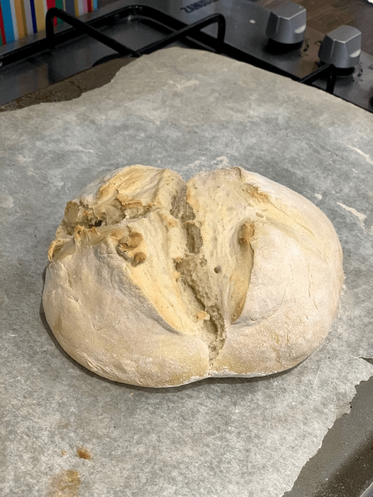 This was a new recipe for me and a new experience using buttermilk in bread, but I was pleased with the outcome. The bread could have down with a little longer in the oven, but John was happy with it and he is our resident expert on Soda bread.