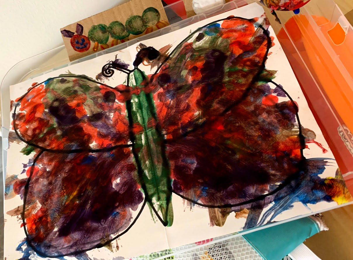Butterfly Symmetry painting – resources: plain paper, pens, paint.
