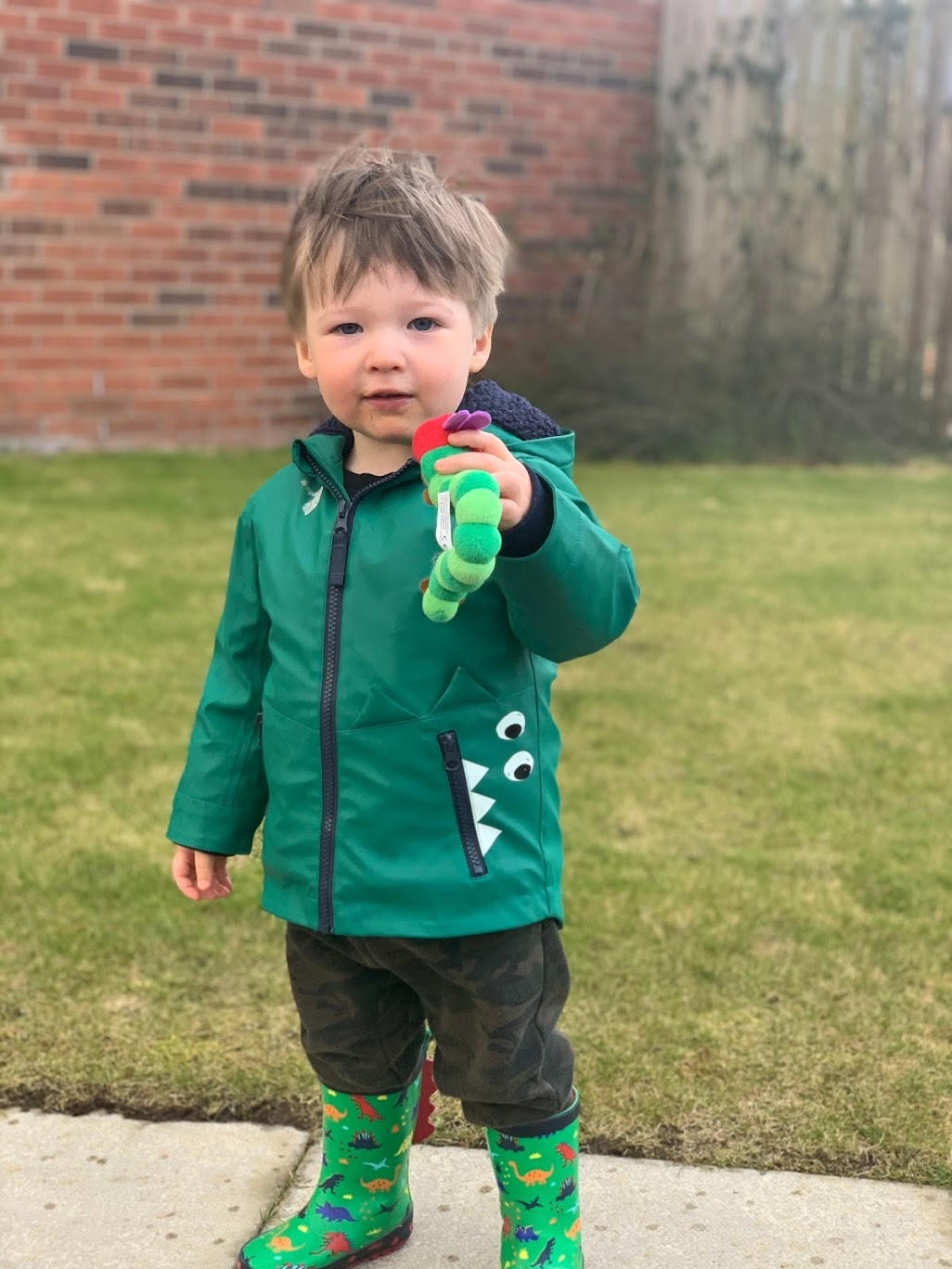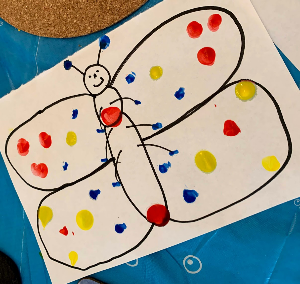 After Robbie’s birthday, we used the toy butterfly, caterpillar, egg and chrysalis he got as a present to model its lifecycle.