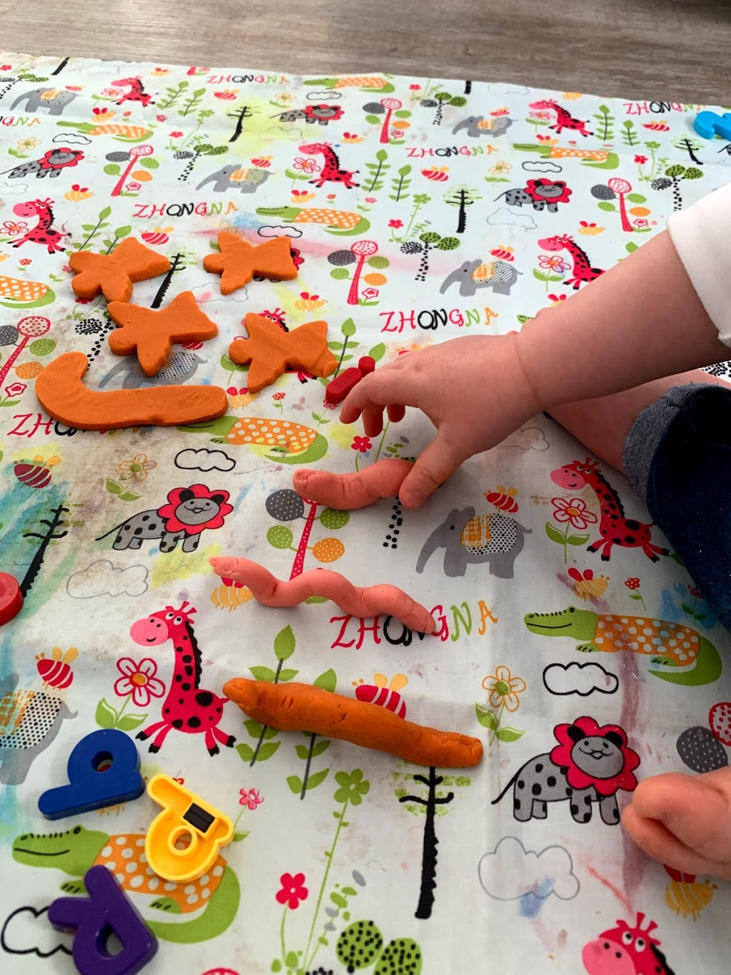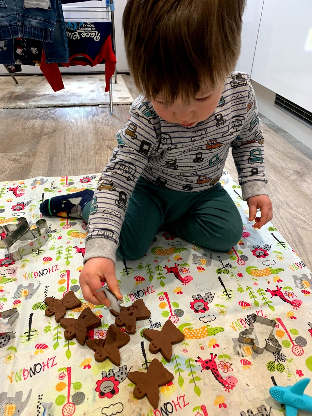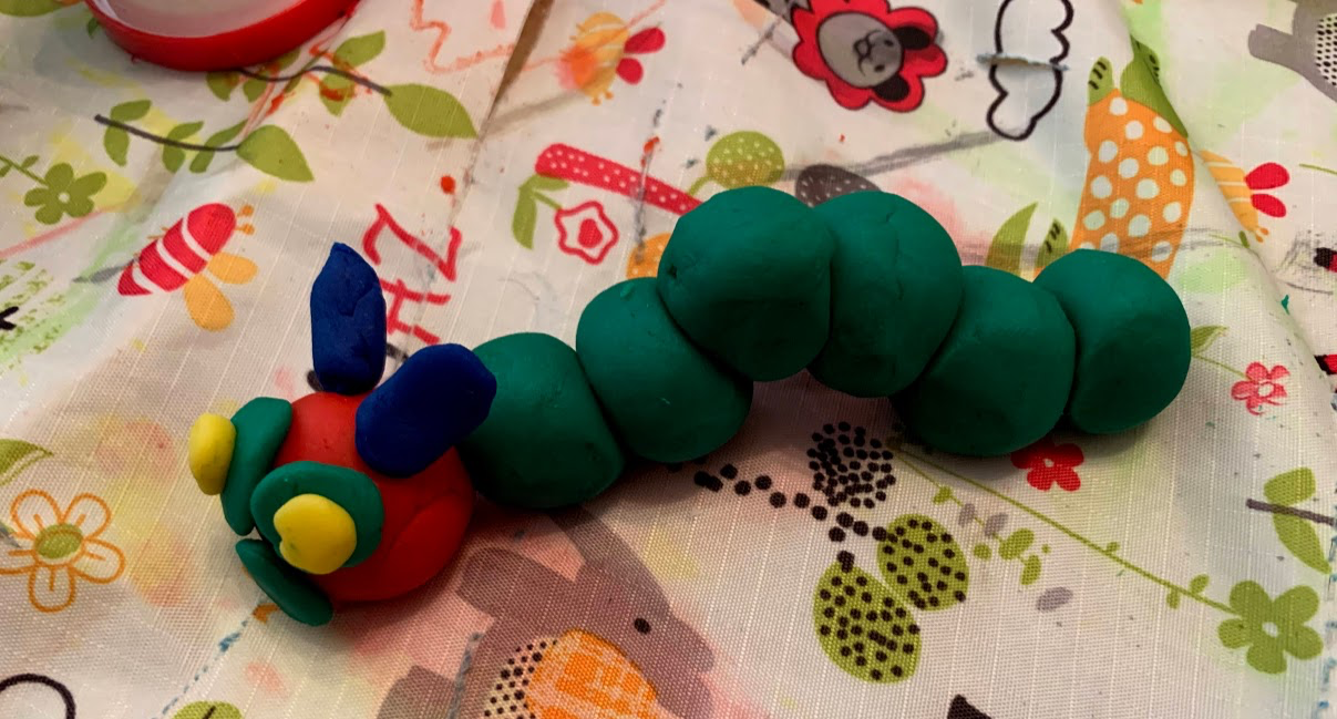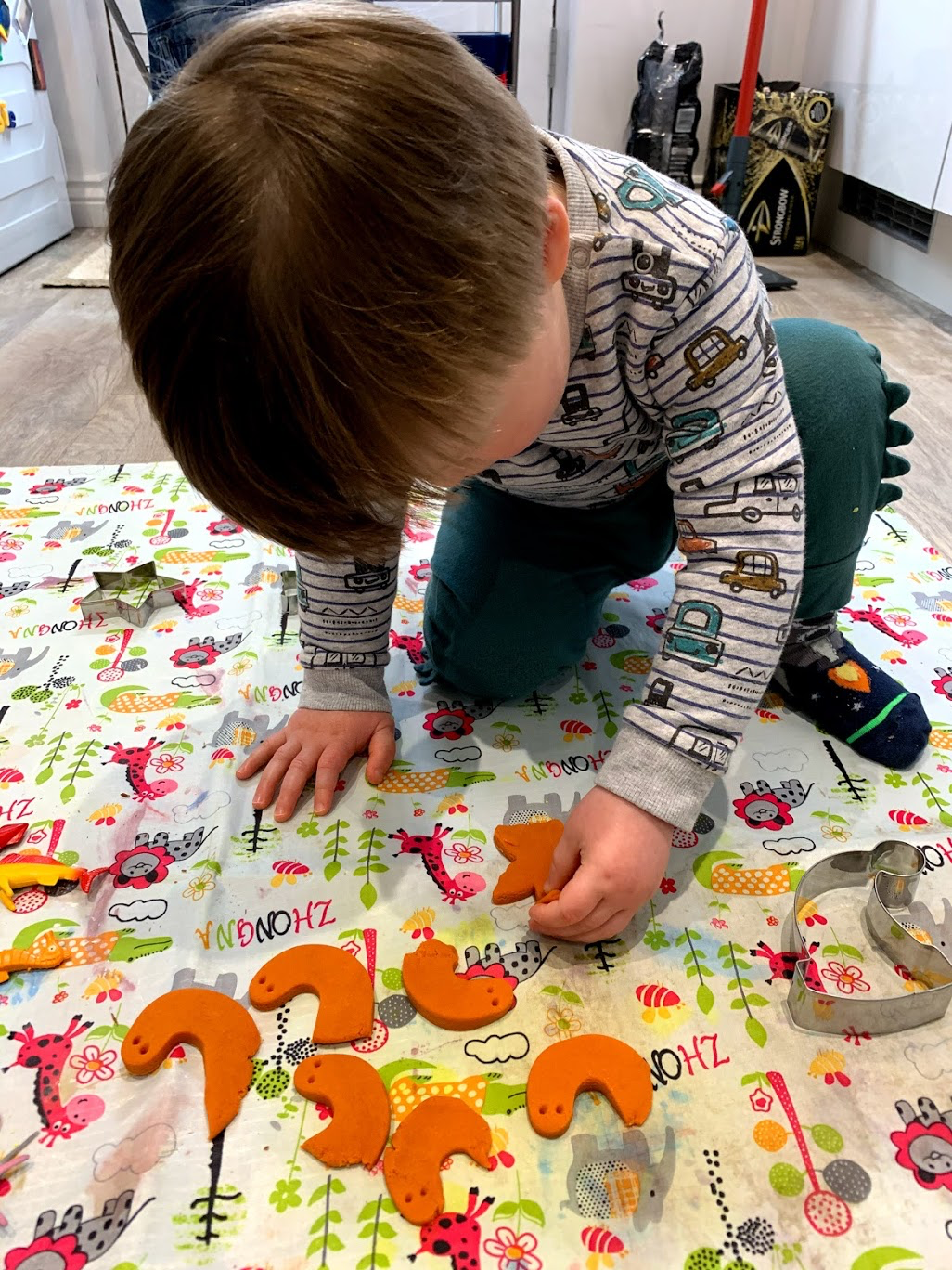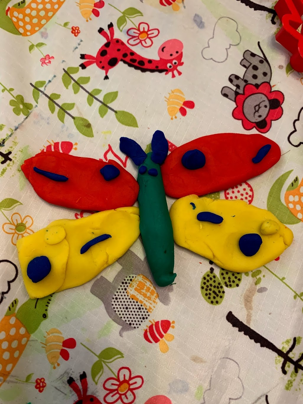 Play-dough Butterflies and Caterpillars – resources: playdough, cutters (you can use the actual butterfly and caterpillar cutters but we just used angel and candy cane ones as Robbie decided they were butterflies and caterpillars).