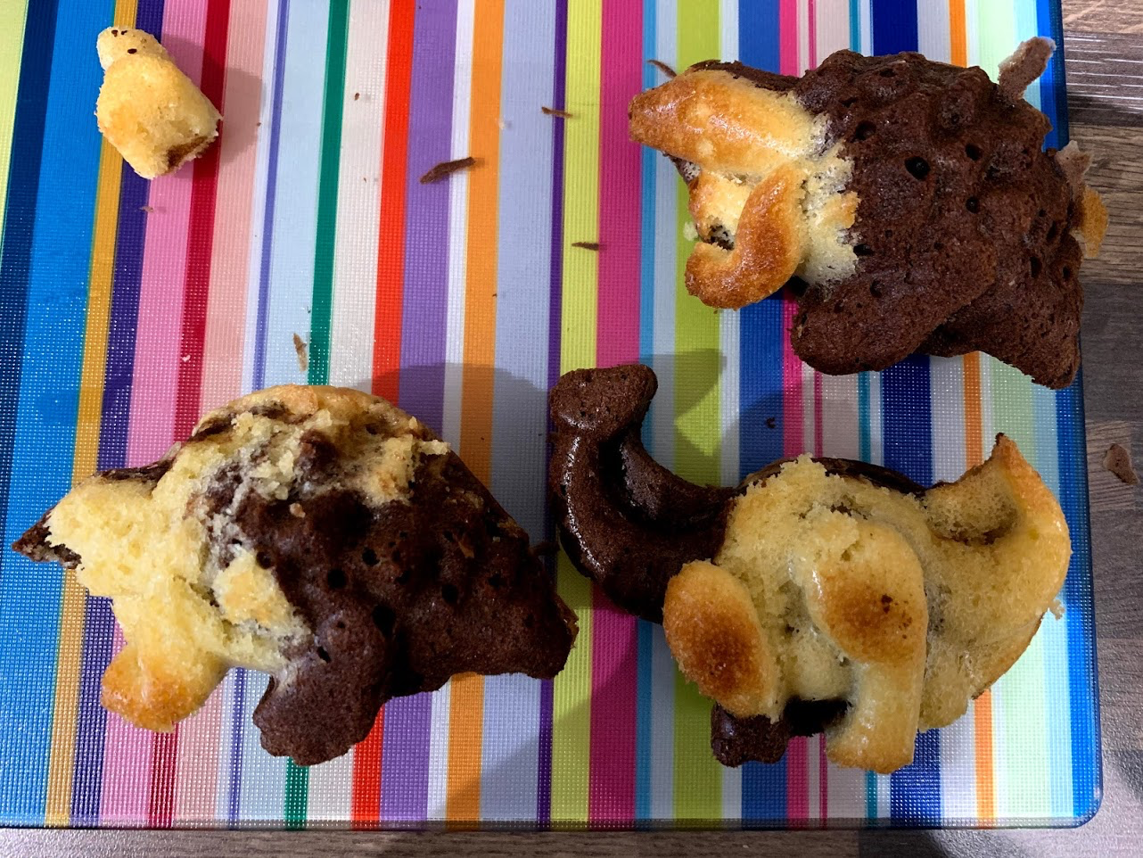 Robbie loves to help with baking so we always try to include it in our weeks somewhere. These were particularly fun because of the novelty shape of the dinosaur mould (from Amazon).