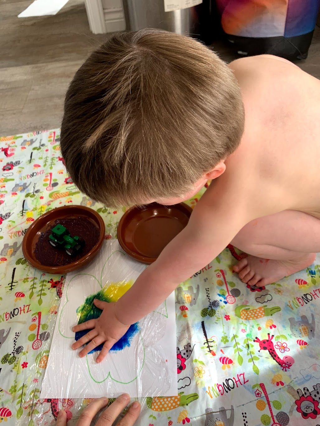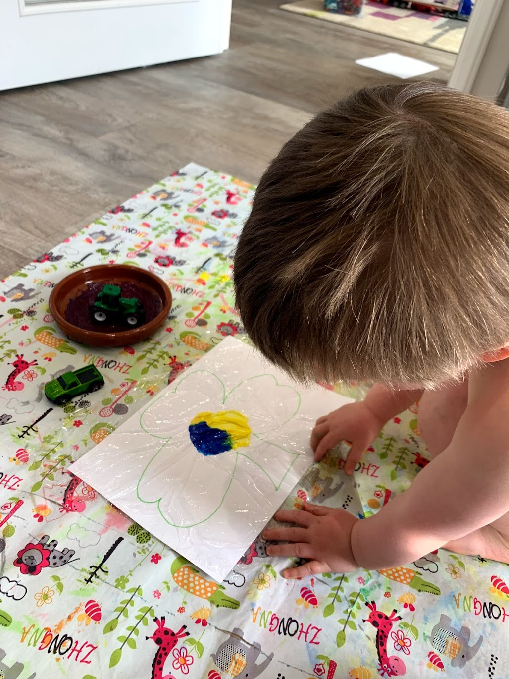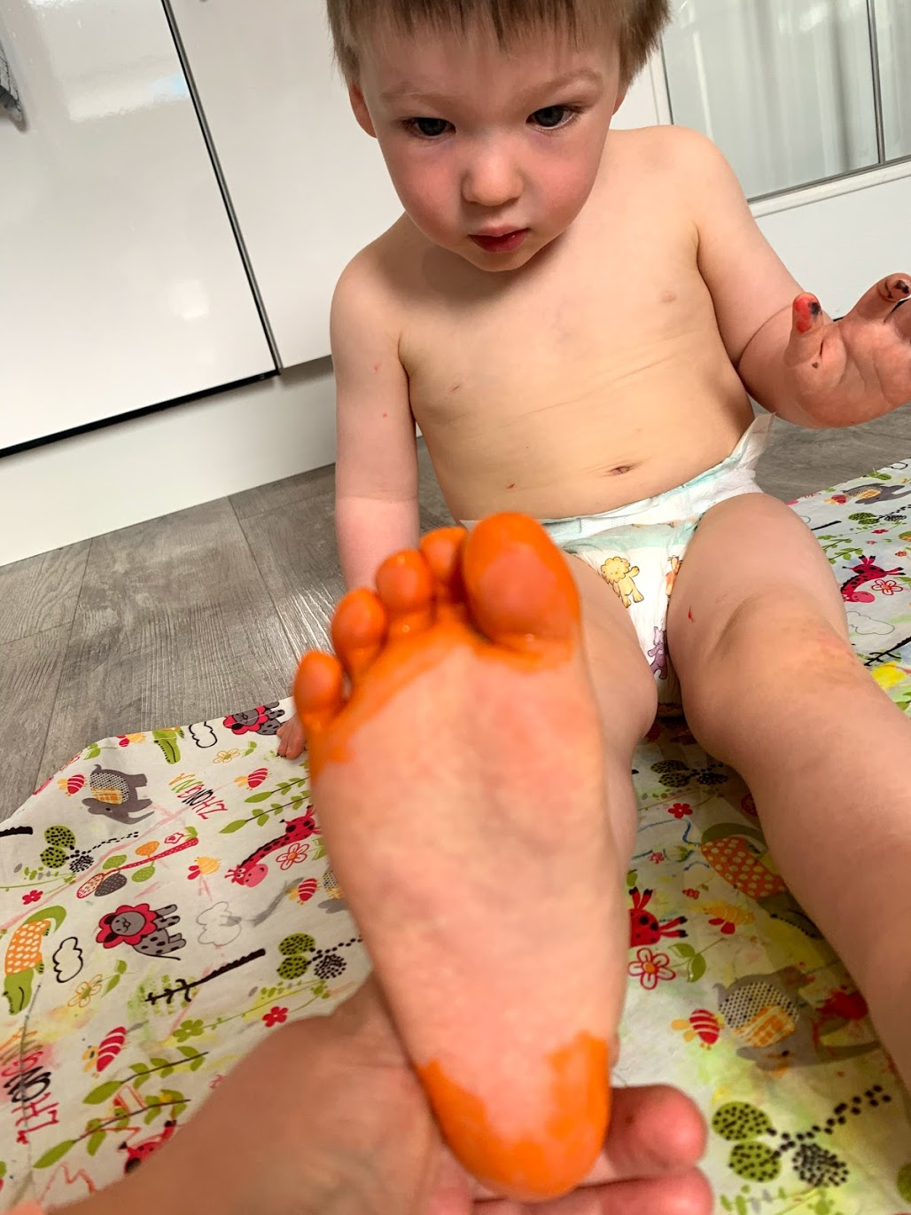 Robbie really enjoyed this activity and found the mixing of the colours to be extremely interesting. We spent lots of time talking about the colours mixing and continued to explore this with other colours after. He also enjoyed the different sensory experience of squashing the paint under the clingfilm. We talked about how it felt and why it wasn’t making his hands dirty.