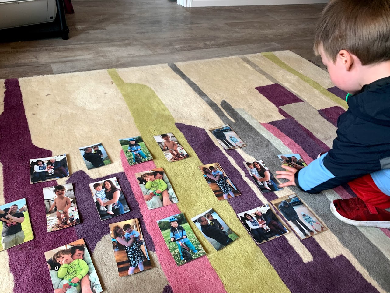 Family Pairs – resources: pictures of family members, cardboard (from old amazon boxes), glue.