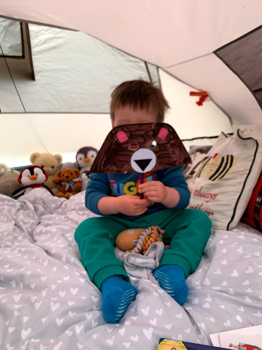 We had great fun doing Cosmic Kids “Going on a bear hunt” video in the tent. The Cosmic Kids yoga videos are a great way to get active and are really engaging and fun for children.