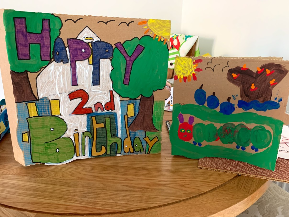 Birthday Card and Singing Happy Birthday – resources: cardboard, paint, pens, candle, matches.