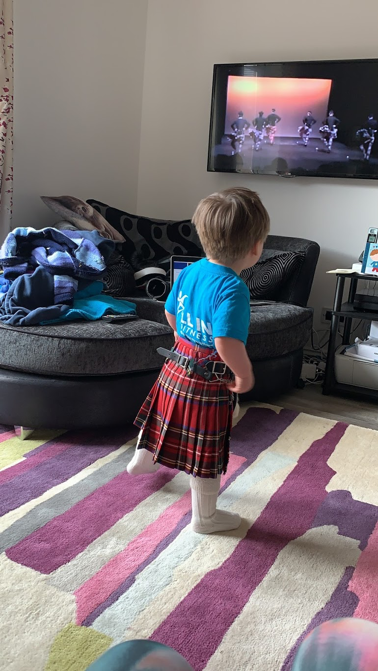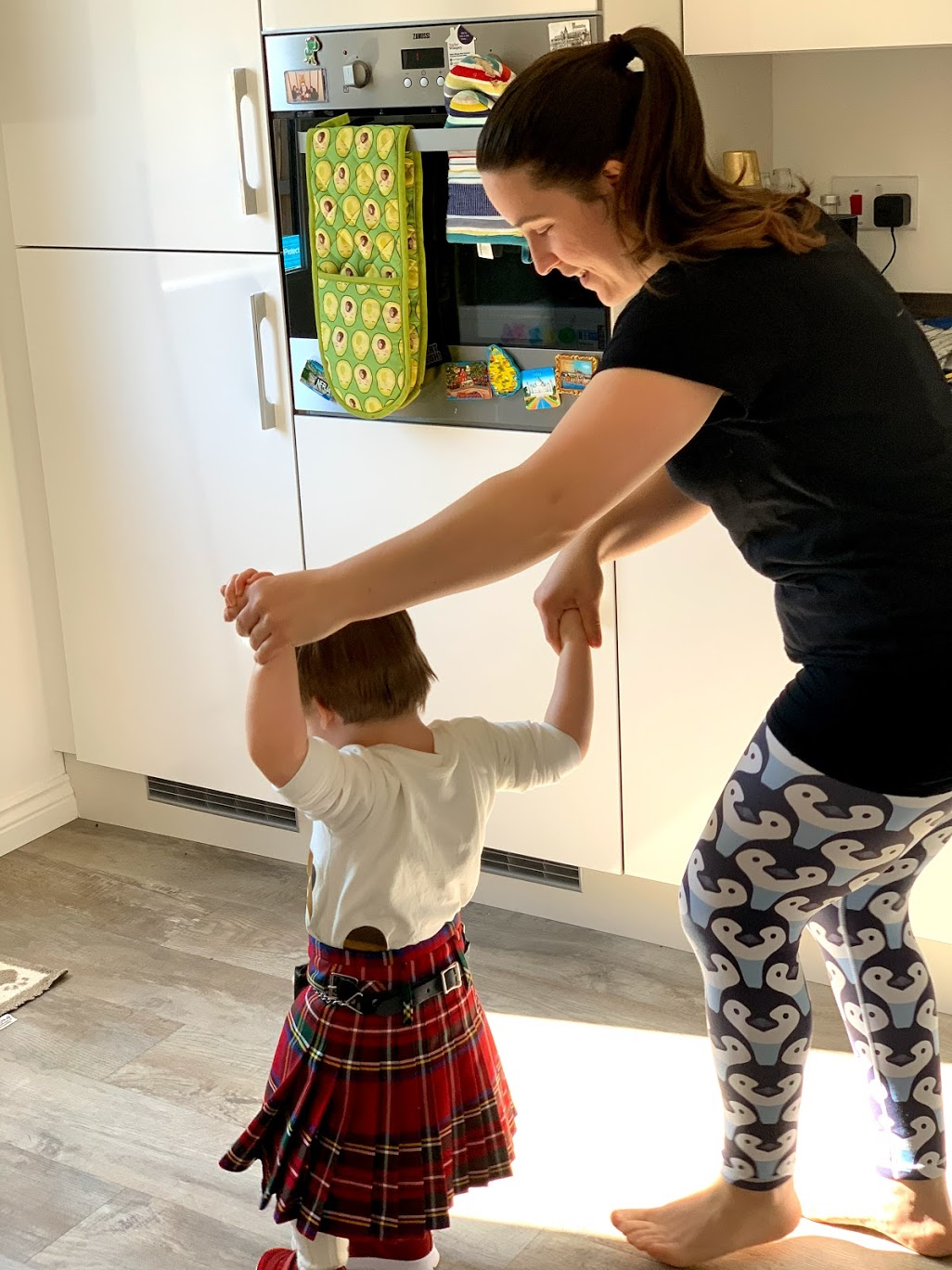 Scottish Country dancing is an essential skill for any young Scottish boy and Ceilidhs are excellent fun. We decided to have our own Ceilidh in the kitchen. Robbie learned many partner dances such as the Gay Gordons, Military Two-step and Canadian Barn Dance. He loves all the twirling and jumping around.