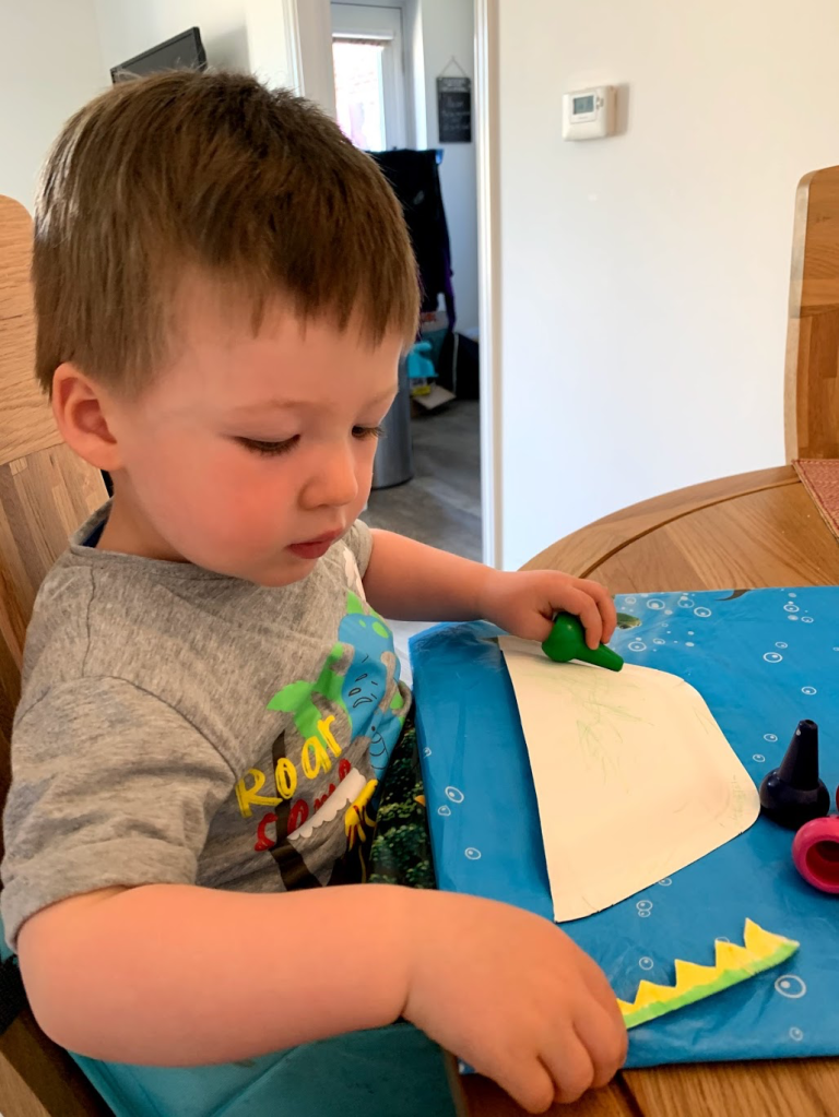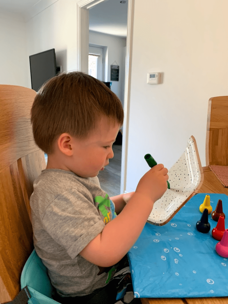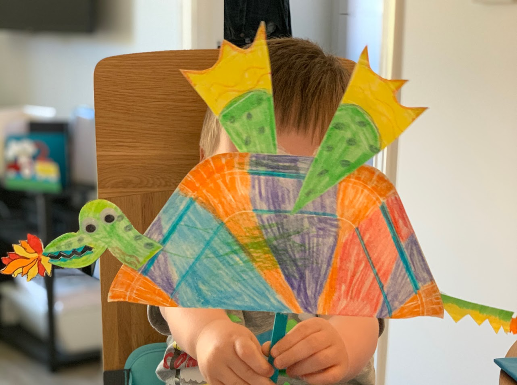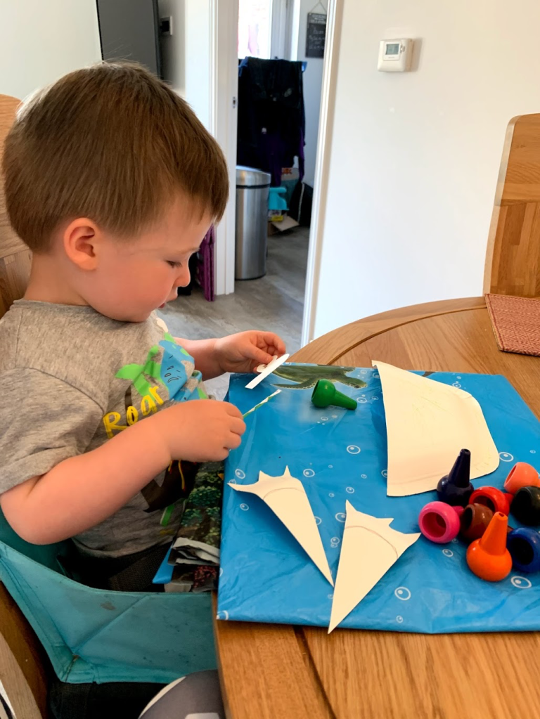 Robbie loved playing with his dragon and had great fun making it. He helped choose the colours and sticking the pieces together.